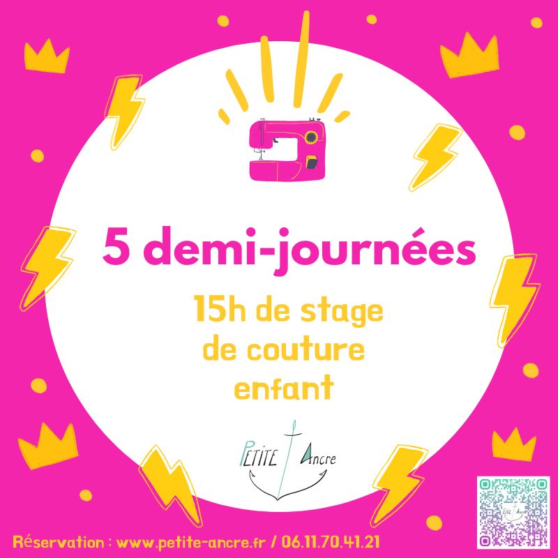 5 demi-journées soit 15h de couture, pour débuter ou approfondir ses connaissances.
